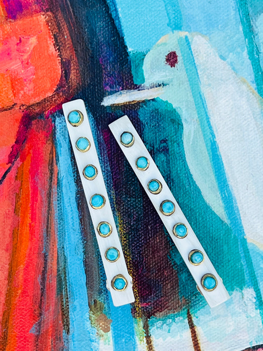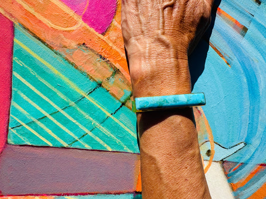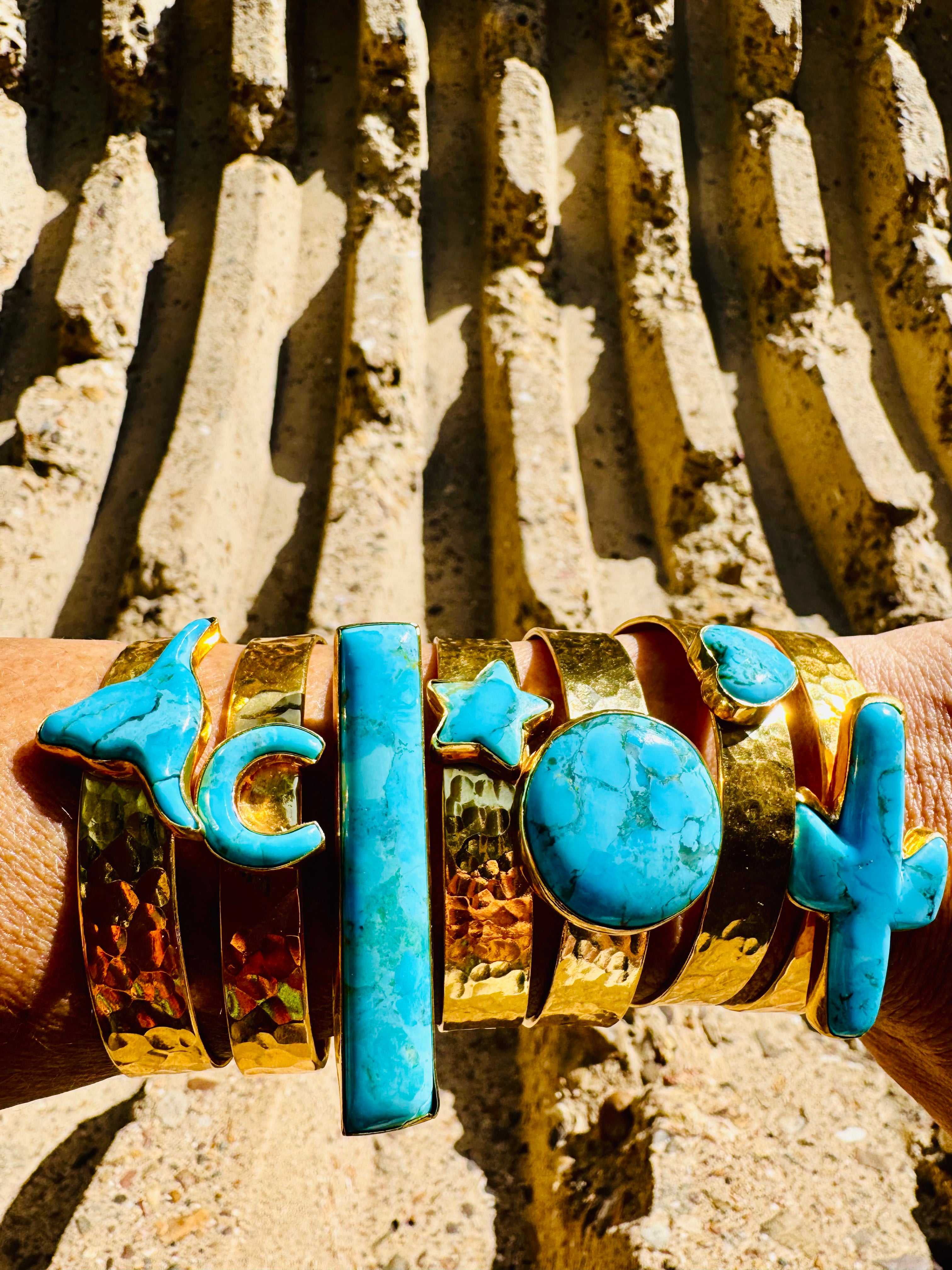 Kate Swail Designs is a jewelry brand that is an extension of Kate Swail’s colorful travels and bold spirit. Inspired by trips to Santa Fe with her grandmother, Mimi and San Miguel de Allende with her great Aunt Doris, Kate found a calling to create and curate beautiful, handcrafted jewelry pieces that reflect her family's vibrant outlook. The collection of bracelets, cuffs, earrings, rings, and necklaces are fashioned with 24K gold plated brass and Arizona-sourced turquoise. Each piece tells a story, as they are overseen by Kate and produced by artisan hands from around the world. Sparked by her love of color and her constant travels to New Mexico, South+Central America, Africa —and the many extraordinary cultures she’s experienced — each piece is imbued with her sense of adventure, all in hopes of inspiring others to find their own wanderlust.