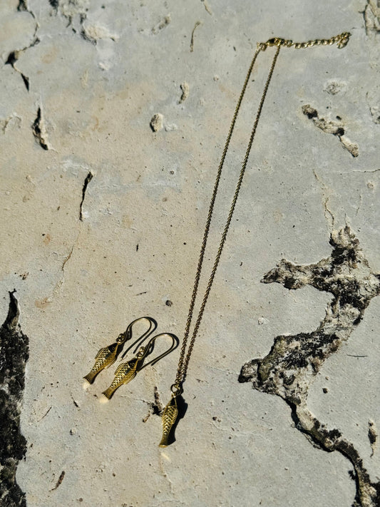 FISH NECKLACE+EARRINGS COASTAL SET