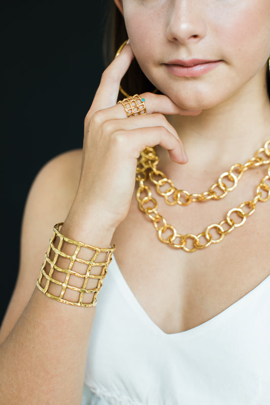 Kate Swail Designs is a jewelry brand that is an extension of Kate Swail’s colorful travels and bold spirit. Inspired by trips to Santa Fe with her grandmother, Mimi and San Miguel de Allende with her great Aunt Doris, Kate found a calling to create and curate beautiful, handcrafted jewelry pieces that reflect her family's vibrant outlook. The collection of bracelets, cuffs, earrings, rings, and necklaces are fashioned with 24K gold plated brass and Arizona-sourced turquoise. Each piece tells a story, as they are overseen by Kate and produced by artisan hands from around the world. Sparked by her love of color and her constant travels to New Mexico, South+Central America, Africa, and the many extraordinary cultures she’s experienced, each piece is imbued with her sense of adventure, all in hopes of inspiring others to find their own wanderlust.