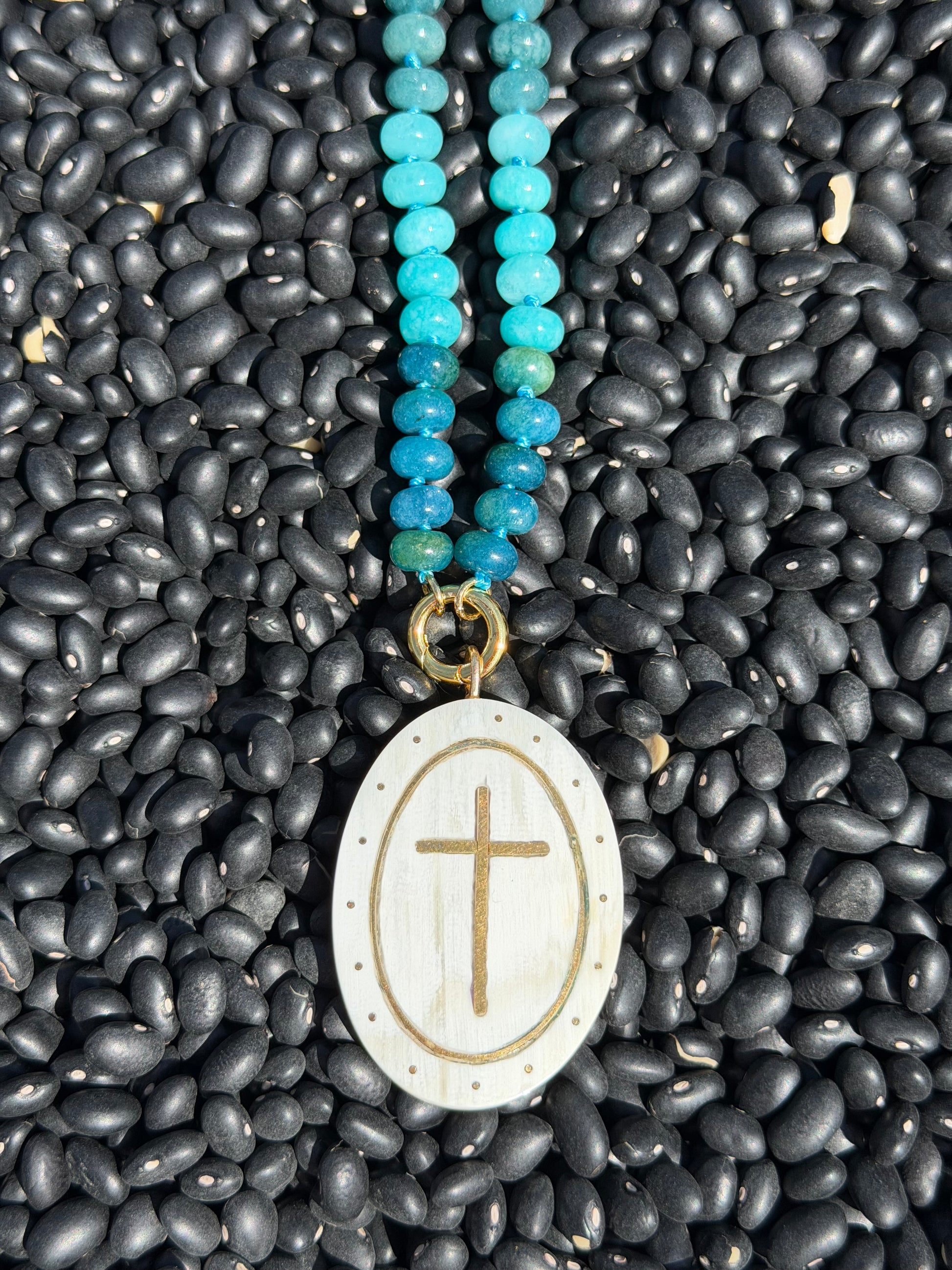 KSDxAKOLA Turquoise Ombré Beads with Cross