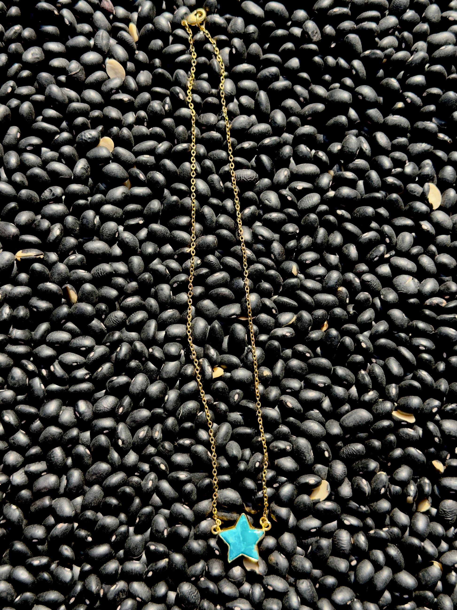 Elevate your everyday look with this charming turquoise treasure. Featuring genuine Blue Kingman Turquoise set in luxurious 24K gold-plated brass, this necklace brings a pop of color and sophistication to any outfit. At 16 inches, it's the ideal length for layering or wearing solo. Whether you're dressing up or keeping it casual, this versatile piece is your new go-to accessory.