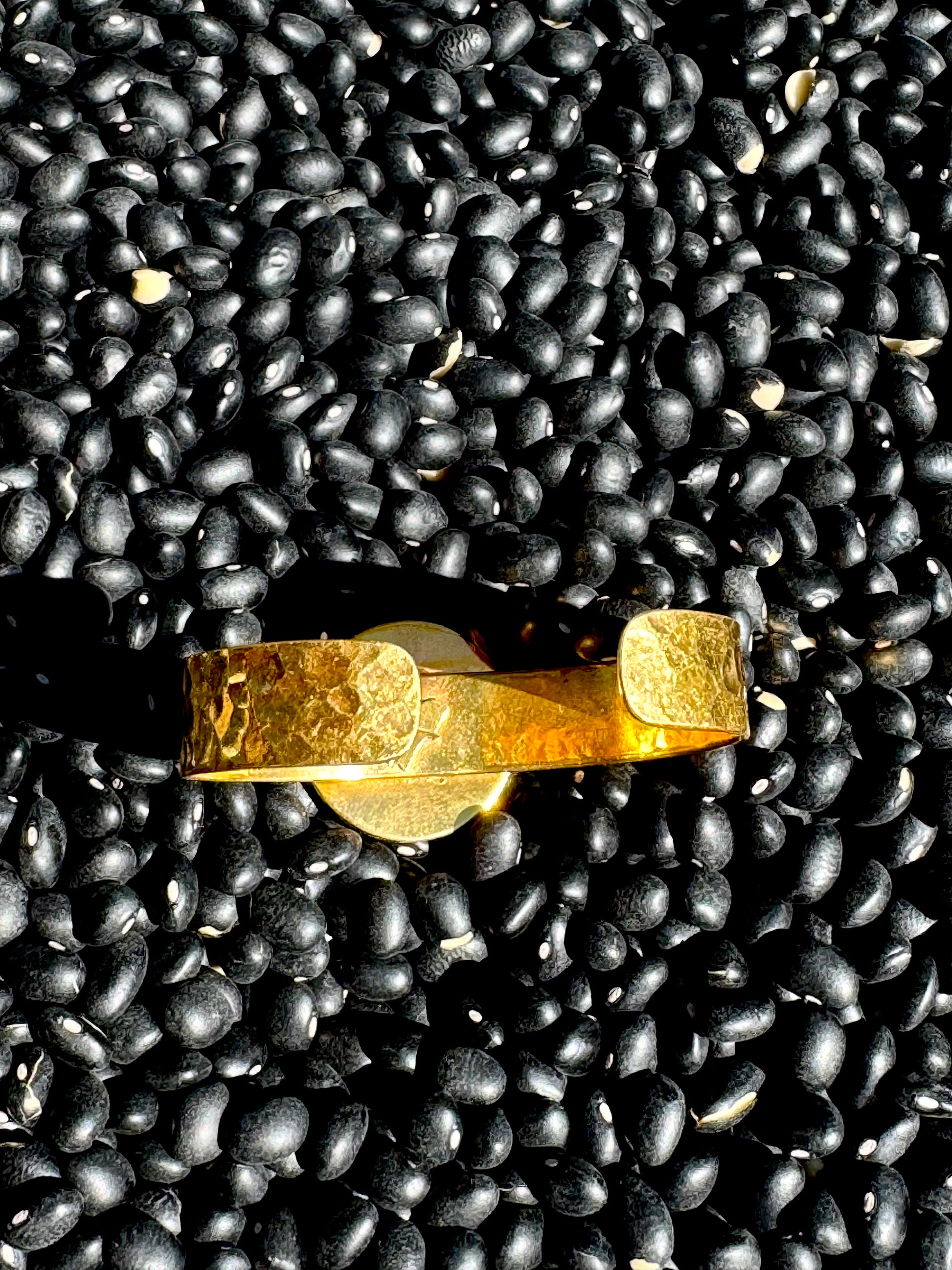 Add a pop of color and personality to your jewelry collection with the stackable Circle Cuff. This playful accessory is adorned with vibrant Blue Kingman Turquoise, beautifully set against a luxurious 24K gold plating that catches the light with every movement. Perfect for mixing and matching, its unique geomaatric design adds a fun, southwestern flair that brightens up any outfit. Whether worn alone or stacked with other favorite pieces, this cuff is a stylish way to bring a cheerful twist and a touch of mod-inspired charm to your look.